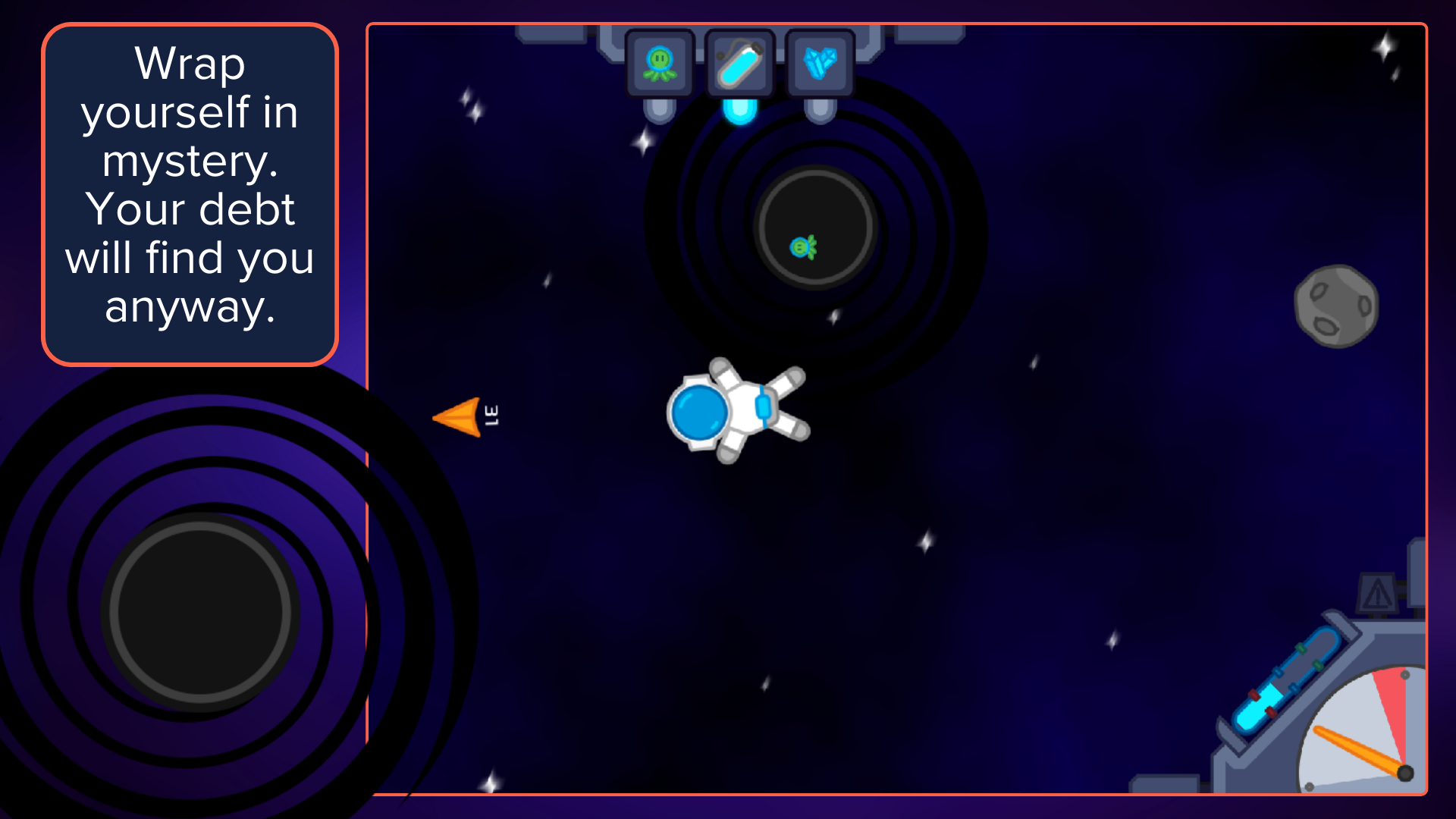 Also bottom-right: Oxygen bar. Run out? You die. Shocking, I know. So either dock often or pray to the void.